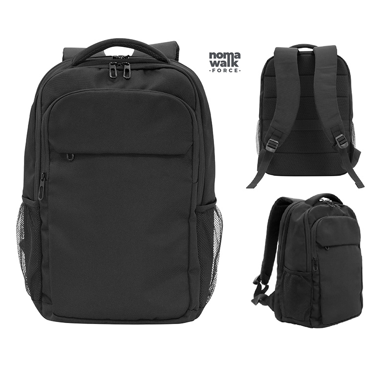 Mochila porta notebook, de hasta 16 pulgadas. Incluye 3 compartimentos con cierre. Compartimento posterior con bolsillo acolchado porta notebook. Amplio compartimento central. Compartimento frontal, interior con bolsillos organizadores y 1 bolsillo frontal con cierre horizontal oculto. Incluye 2 bolsillos laterales de red elastizados porta botellas y accesorios. Asa superior reforzada, correas ajustables y espalda acolchadas. Tira para sujetar la mochila en la manija extensible de un equipaje de mano. Cierres y tiradores de cierres metálicos. Materiales: Poliéster Gucci 1200D. Interior en poliéster 210D estampado. Incluye 1 logo full color (DTF transfer digital).