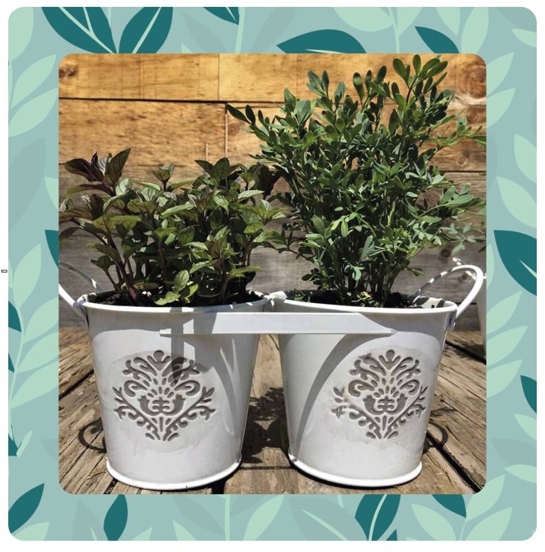 Son las clásicas “hierbitas” que tanto ayudan en la cocina o para relajarnos y despejarnos. Esto porque tienen compuestos y aceites esenciales que generan propiedades beneficiosas para la salud tales como efectos digestivos positivos, antioxidantes, antiinflamatorios, antimicrobianos y relajantes. Así que qué mejor regalo; aparte de decorativas, nos acompañan y ayudan. Destacamos entonces, el Balde Doble con Aromáticas en que seleccionamos 2 plantas aromáticas de la estación. Esto es importante porque van variando a lo largo del año. Por ejemplo, en verano y fines de primavera vamos a tener las albahacas más lindas, y lo mas probable es que mentas y poleos vayan en la temporada más invernal, aunque en realidad estas últimas nos acompañan todo el año.